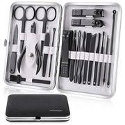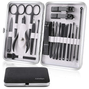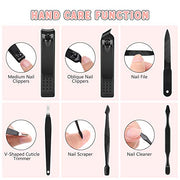 Jubolion Manicure Set, 19pcs Stainless Steel Professional Nail Clippers Pedicure Set with Black Leather Storage Case, Portable Grooming Kit for Travel or Home, Perfect Gifts for Women and Men (Black)