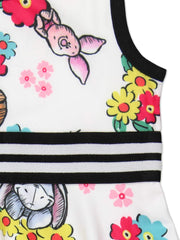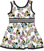 Contains One Winnie The Pooh, Tigger, Piglet and Eeyore All Over Print Black and White Floral Sleeveless Dress or One Minnie Mouse and Daisy Duck All Over Print Black and White Floral Sleeveless Dress