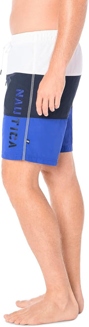 Nautica mens Quick Dry Classic Logo Tri-block Series Swim Trunk Swim Trunks