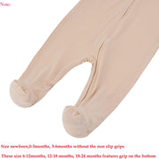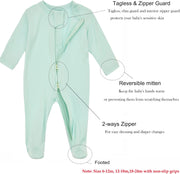 ?Built-in Mittens and Footed?All sizes design with reversible mitten hand covers to prevent baby from scratching themselves. This 9-12 months baby footie pjs features grip on the feet for extra stability. Great for little baby on the move(0-9 months size without non-slip grips)