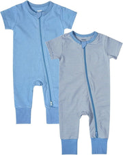 Teach Leanbh Baby Boys Girls 2-Pack Romper Jumpsuits Cotton 2 Way Zipper Short Sleeve Footless Sleep and Play 3-24 Months