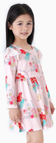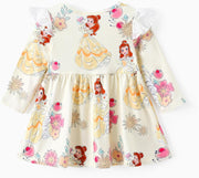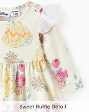 Officially licensed Disney Princess Baby Girl Ruffled Long Sleeve Playwear Dress.