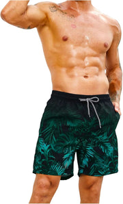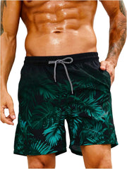 GORGLITTER Men's Drawstring Elastic Waist Tropical Print Swim Trunks Slant Pocket Summer Shorts