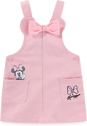 Contains a charming design, a crisp white jersey top paired with a soft pink twill jumper dress, complete with an adorable pink bow, adding a delightful touch of whimsy and elegance that reflects Minnie Mouse iconic style.