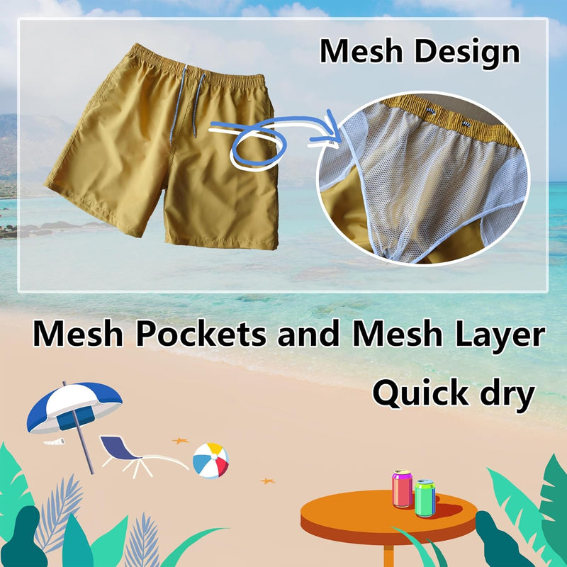 ???6inch Mens Swimming Shorts?Designed with a breathable mesh liner, these men's swim trunks offer enhanced ventilation, keeping you cool and preventing discomfort during long wear.