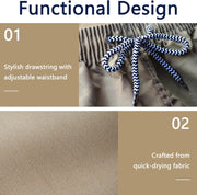 ???Quick Dry Mens Swim Trunks?Crafted from a quick-drying fabric, ensuring you stay comfortable and dry after a swim or a day at the beach.