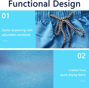 ???Mesh Pocket For More Comfort?The men's swimming shorts feature mesh pockets that allow for quick water drainage, ensuring you stay light and dry during water activities.