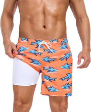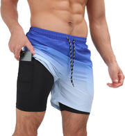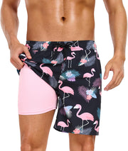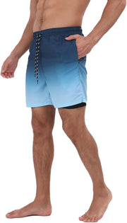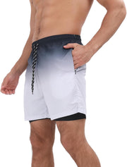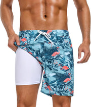 Mens Swim Trunks with Compression Liner 2 in 1 Quick Dry Beach Swimming Trunks Swim Shorts with Zipper Pockets
