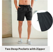 Paratoland Mens Casual Gym Shorts with Two Zipper Pockets Drawstring Quick Dry Sports Shorts Good for Workout Exercise Training Running and Swimming