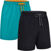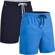 RBYEKP Mens Swimming Trunks 2 Pack Quick Dry Beach Surfing Shorts for Men Elastic Waist Board Short with Mesh Lining(Slim Fit)