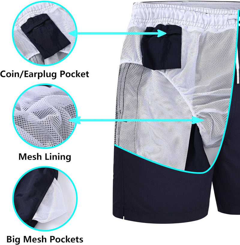 Men's swimming shorts are lined with mesh to provide support and reduce friction, increasing comfort.