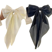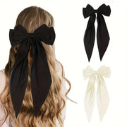 Elevate your hairstyle effortlessly with this set of 2 elegant Long Tassel Bow Hair Clips. Designed with chic minimalism in mind, these oversized satin bow clips are perfect for adding a touch of sophistication to any outfit. The set includes two classic Black & White bows, each crafted from high-quality satin fabric for a luxurious feel. The fabric bow tie barrettes not only provide a stylish look but also ensure a comfortable and secure grip, making them ideal for women and girls alike. Measuring an impressive 33cm in length and 21cm in width, these bold yet refined hair accessories are perfect for making a statement. Whether you're heading to a special event, dressing up for a casual day out, or simply want to add a fashionable touch to your everyday look, these versatile hair clips are your go-to choice. Their easy-wear design allows you to style your hair effortlessly while adding a trendy, polished finish. Step up your hair game with these fashionable, practical, and timeless accessories that blend elegance with everyday convenience.