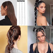 Goodern 4 PCS Women Hair Chains Tassel Hair Clips,Shiny Rhinestone Hair Extension Chains Fashion Long Tassel Hair Clip Chain Delicate Ponytail Extension Chain Decor Girls Punk Hair Accessories-Silver