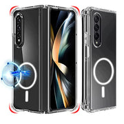 Magnetic Clear Case for Samsung Galaxy Z Fold 4 5g, Compatible with Card Wallet and Wireless Charger, Transparent Shockproof and Drop-Proof Hard PC Phone Cover