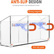Magnetic Dry Erase Marker Holder For Whiteboard, Non-slip Acrylic Magnet Pen Holder For Fridge Refrigerator, 2 Compartments Whiteboard Marker Holders, Desk Pencil Cup, Marker Organizer