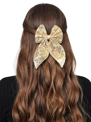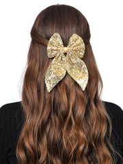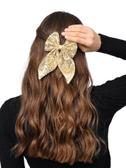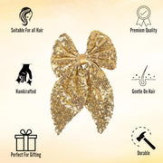 Radhu & Kabby Trendy Hair Bow for Women/Girls | Perfect for Special Occasions | Fancy & Stylish Hair Accessories | Anti-Hair Breakage | Glittery Golden Color | Same as pic | 1 Pcs