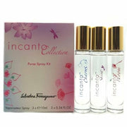 Experience the essence of Salvatore Ferragamo Incanto (W) Mini Set, comprising three charming 10ml EDTs in Charms, Shine, and Bloom variants for a delightful olfactory journey.