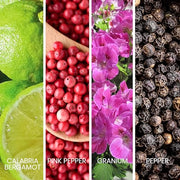 The scent opens with Calabrian bergamot to give a zesty shower fresh opening. Coupled with spicy pepper, this radiant start leads into nostalgic geranium, juicy pink pepper and warming elemi resins. The heart of this perfume bursts with magnetic spice and blends perfectly with earthy patchouli and grassy vetiver. The base fragrance notes move seamlessly into the suave territory of leathery labdanum, sharp cedarwood and musky ambroxan.