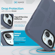 Speck iPhone 15 Case - Built for MagSafe, Drop Protection Grip ??for iPhone 15 iPhone 14 & iPhone 13 - Scratch Resistant, Soft Touch, 6.1 Inch Phone Case - CandyShell Grip Mystery Blue/Faded Denim