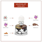 Mukhalat Malaki has the exquisite qualities that make it fit for royalty. Its majestic blend of florals, spices, amber and woods offer a unique experience in scent and a quality that elevates you to new echelons. Mukhalat Malaki offers a deceptively simple opening of Turkish rose: a rose that is Queen among them all. Each facet unveils a new layer of satin petals until it gently melts into precious strands of saffron. This rare spice adds floral warmth, rising to meet an extraordinary blend of agarwood, blazing its glowing trail. Gently cloaked in velvet sandalwood, you assume a new poise you didn?? know you had. Mukhalat Malaki is an intense unisex concentrated perfume oil, and is ideal for cooler seasons. A blend for the royals.