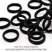 SYGY 100 PCS Hair Ties for Women, Elastic Cotton Thick Seamless Black Hair Bands, No Crease No Damage for Thick/Thin Hair, Soft Hair Ties Ponytail Holders Hair Accessories