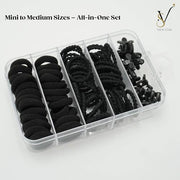 Viewstar 74 PCS Black Hair Ties Set - Durable Elastic Rubber Bands & Mini Claw Clips for Women & Girls ??No Damage, Strong Hold, Travel-Friendly Storage Box