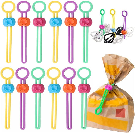 View full detailsJCZD 12 Pack Snack Bag Sealing Clips, 3 Colors Reusable Silicone Bag Clips Adjustable Food Clip Ties, Essential Storage Tool for Home Kitchen Office Organization