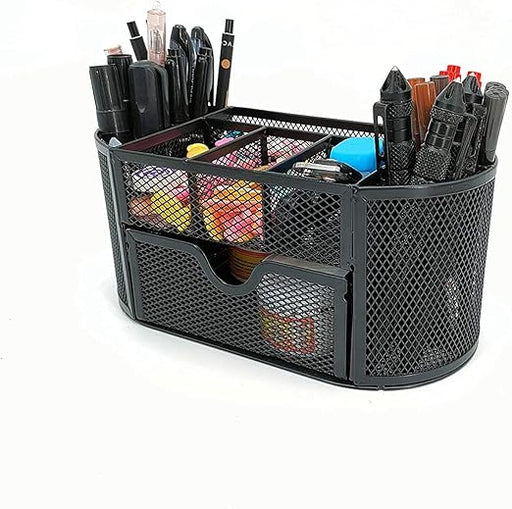 KASTWAVE Desk Organizer with Drawer, Desktop Organizer and Accessories with 9 Compartments for Pen Pencil Organizer Holder, Black
