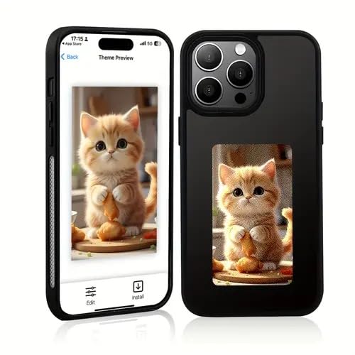 Smart Ink NFC Mobile Cover for iPhone 15 Pro Max - DIY Photo Display, E-Ink Screen, NFC Transmission, Anti-Slip, Anti-Shock, Digital Case (Black)