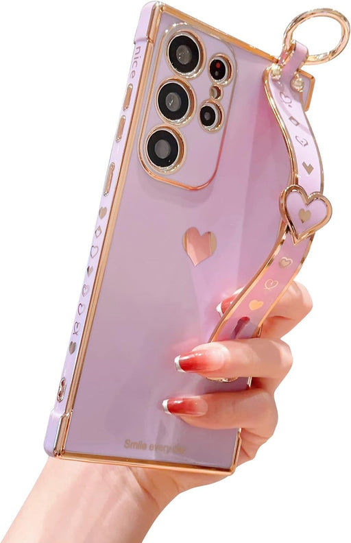 S24 Ultra Luxury Love Heart Plating Case for Girls Slim Soft TPU Cover Compatible with Samsung Galaxy S24 Ultra ???? ????? ????? | ???? ???? ??????? | ?????? ?? ??????? ??????? S24 ????? (Purple)