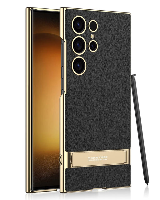 Premium leather Phone Case for Samsung S24 Plus S24 Ultra shockproof Cover adjustable holder (Black, S24 Ultra)