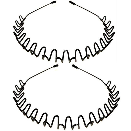 WantGor Metal Headbands, 2 Pack Fashion Unisex Black Hairband Spring Wave Non Slip Sports Headwear Hair Hoop Hair Accessories (2 Pack)