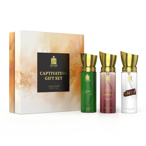 Adilqadri Captivating Trio Luxury Perfume Gift Set (3 x 20ml) | With Shanaya, White Oud, Safwan Perfume, Unisex Strong Woody, Fruity, Amber Long Lasting EDP Fragrance Set