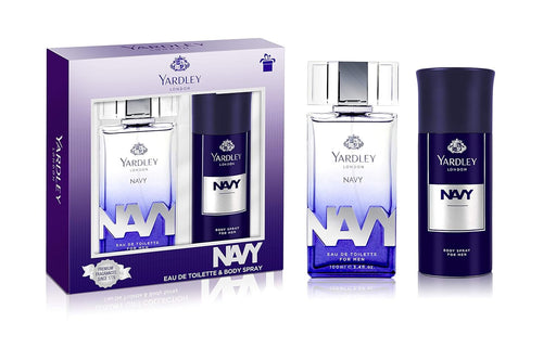 Yardley London Navy Perfumed Gift Set for Men - EDT 100 ml + Body Spray 150 ml Fresh Marine Fragrance