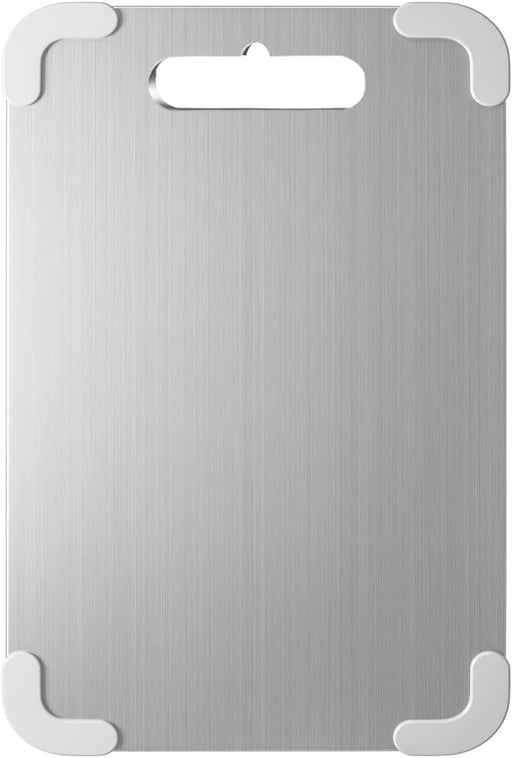 View full detailsHahamiya 304 Stainless Steel Cutting Board,Double Sided Chopping Board for Kitchen, Juice Groove,Scratch-resistant Mesh Design,Non-slip Silicone Wrap,Non-Toxic BPA Free for Meat Vegetable-1Pcs