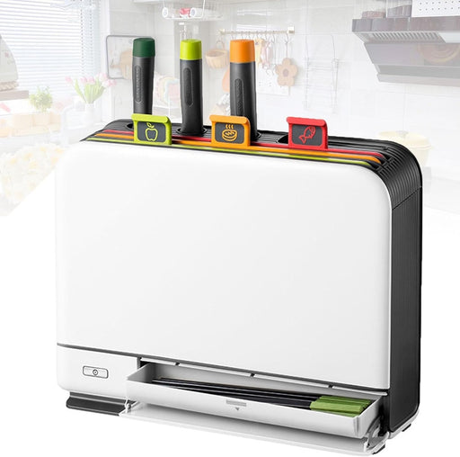 View full detailsSmart Cutting Board & Knife Set, Sterilizing & Drying Chopping Board Organizer, with 4 Color Coded Cutting Boards and 4 Stainless Steel Knives