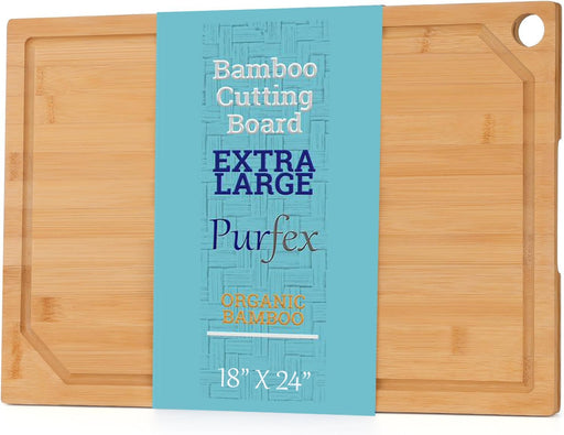 Purfex XL Wooden Cutting Board-Extra Large Chopping Board for Kitchen-24 x 18 Inch-Countertop-Meat Cutting Board for BBQ - Turkey Carving Board with Juice Groove-Meat, Vegetables, BBQ, 0.6"Th