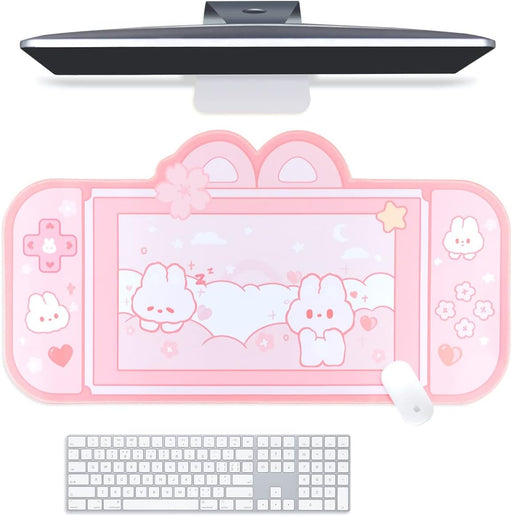 BelugaDesign Bunny Desk Pad | NS Switch Keyboard Gaming Mat Large Mat Mousepad | Pastel Pink Animal Kawaii Cute Anime Desk Blotter Protector (Pink Rabbit, Large)