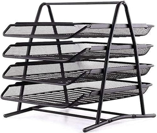 SHOWAY ECVV Desk Deposit Tray 4 Layer A4 Metal tray Office Desk Organiser Paper office Mesh Document Basket File Paper Tray Letter Organiser Holder Desktop Accessories