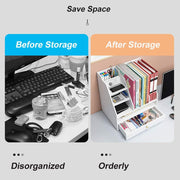 BlayaAdd Desk Organizer with Pen Holder, DIY White Office Stationery Desktop Storage Holder Sorter with Drawer for Home, Office and School (PB04)