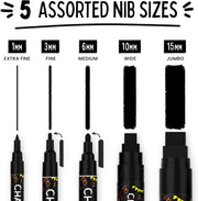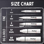 1mm | 3mm | 6mm | 10mm |15mm - All in one set of White chalk markers fine tip (thin), extra fine point & bold tip (thick). Time to replace the old dusty chalk with white chalk ink marker