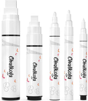 Chalkola 5 White Chalk Markers for Chalkboard Signs, Blackboard, Car Window, Bistro, Glass | 5 Variety Pack - Thin, Fine Tip, Bold & Jumbo Size Erasable Liquid Chalk Pens (1mm, 3mm, 6mm, 10mm, 15mm)