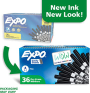 EXPO Fine Tip Dry Erase Markers, White Board Markers Dry Erase, Low Odor, Black, 36-Count