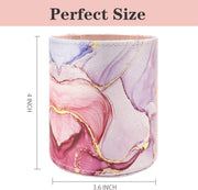 WAVEYU Pen Holder for Women Girls, Pencil Cup Pink Desk Decor, Makeup Brush Holder Large Pu Leather Multi-Functional Organizer Cup for Office, Classroom, Home, Colorful Marble