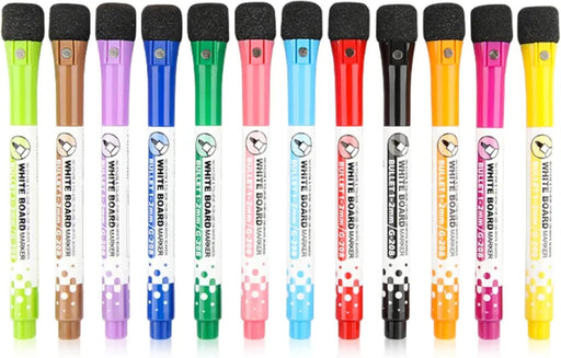 12 Colors Erasable White board Magnetic Dry Erase Markers,Fine Point with Eraser Cap, Low Odor White Board Dry Erase Pens Fine Tip for Kids & Teachers, Home, Office and School Supplies