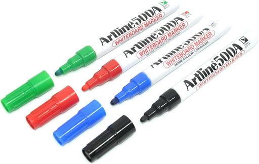 Artline 500A White Board Markers Bullet Nib Assorted Colors, Pack of 4 pcs, Polyester Fibre Tip 2.0mm - ARMKEK-500A/4