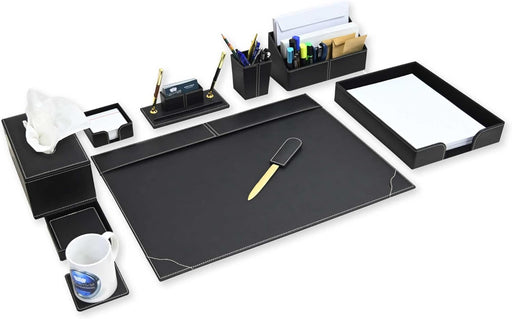 FIS Executive Desk Set with Italian PU Materials, Set of 9 Pieces Desk Set Organizer, Black Color, Pack in Gift Box-FSDS172BK