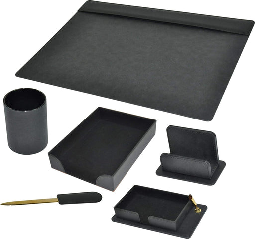 FIS Executive Desk Set with Italian PU Materials, Set of 6 Pieces Desk Set Organizer, Black Color, Pack in Gift Box-FSDS181BK