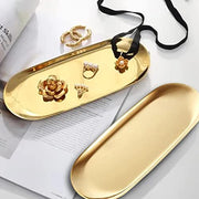 AngelGuard Stainless Steel Tray Plate - Bathroom Vanity Tray - Black Gold Decorative Towel Clutter Serving Platter, 9 Inch