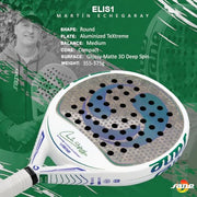 The ELIS1 is a perfect choice for intermediate-advanced players looking to control the game. The aluminized TeXtreme plate and compact core provide great control without losing power on every stroke. The round shape also makes you feel comfortable in defending all kinds of blows. Its matte-gloss finish with 3D deep spin relief gives it a very elegant look and gives it an incredible grip on the ball. Its average balance makes it very manageable and its Smart Grip System technology tells you every time where to reposition the non-dominant hand in waiting phase. L'ELIS1 ? un'opzione perfetta per i giocatori di livello intermedio-avanzato che desiderano controllare il gioco. La piastra TeXtreme alluminizzata e il nucleo compatto offrono un ottimo controllo senza perdere potenza ad ogni colpo. The roundabout form ti far? sentire a tuo agio nel difendere tutti i tipi di colpi. The sua finitura opaca-lucida con rilievo 3D Deep Spin gli conferisce un aspetto molto elegantes ed effetti incredibili. Il suo bilanciamento medio rende lo molto maneggevole e la sua tecnologia Smart Grip System ti dice ogni volta dove riposizionare la mano non dominante nella fase di attesa. The ELIS1 is a perfect option for intermediate to advanced players looking to control the game. The aluminized TeXtreme plate and its compact core offer great control without losing power. The round shape will make you feel comfortable defending all types of shots. Its matte-gloss finish with 3D Deep Spin relief gives it a very elegant look and a great grip on the ball. Its medium balance makes it very easy to handle and its Smart Grip System technology tells you every time where to reposition your non-dominant hand in the waiting phase.